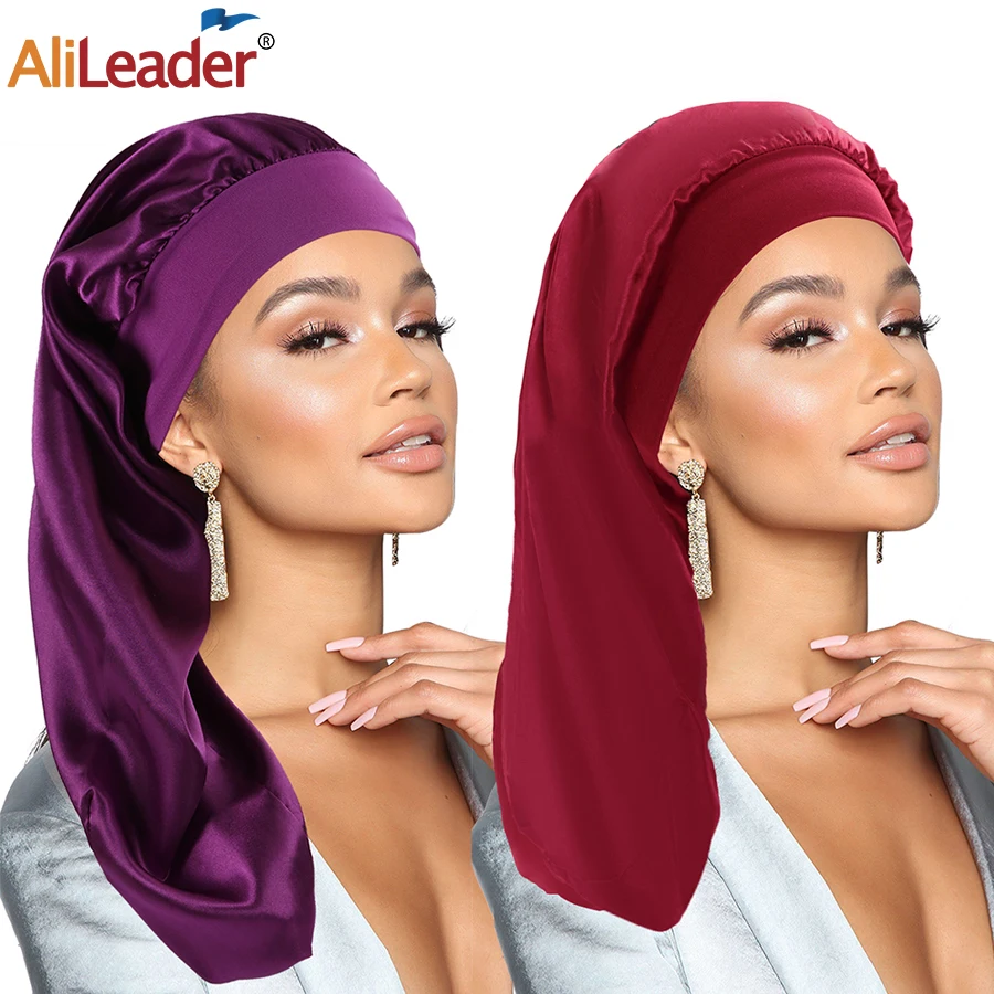 Extra Long Satin Bonnet Sleep Cap Silk Sleeping Cap With Wide Elastic Band Loose Night Hat For Women Braids Curly Hair Black
