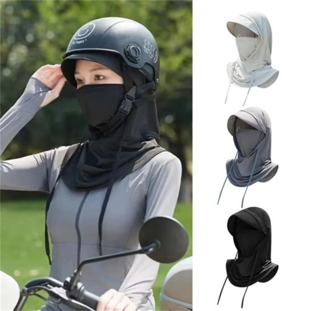 Dual-Use Full Face Sun Protection Mask Summer Sun Hat Ice Silk Face Balaclavab with Brim, for Hiking, Cycling, Hunting, Fishing