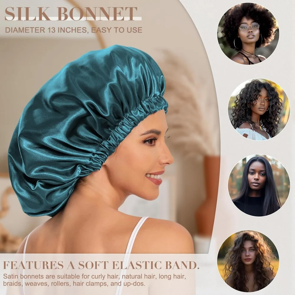 New Women Oversized Silky Hair Soft Elegant Bonnet Solid Color Satin Bonnet Sleeping Night Cap Elastic Shower Bath Hats