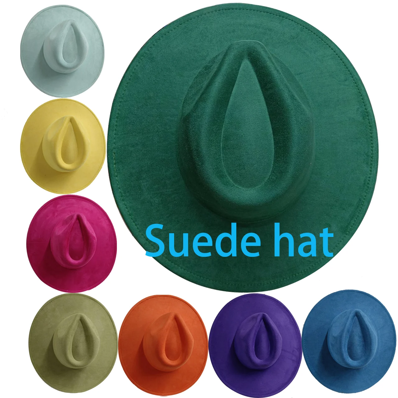 NEW Suede Hat 9.5cm Wide Brim Fedora Hat Men Women Autumn Winter Felt Jazz Hats Classic Church Fedoras Chapeau Sombrero Mujer
