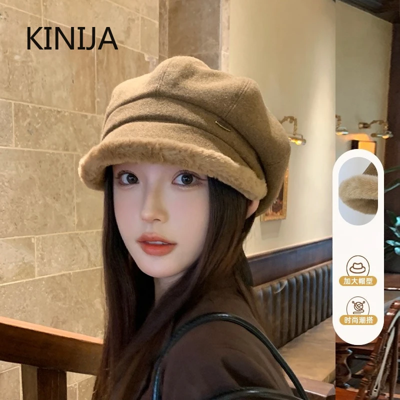 Winter Painter Hat Lamb Fleece Peaked Cap Coldproof Harajuku Korean Style Keep Warm Plush Octagonal Cap Girl Bucket Hat