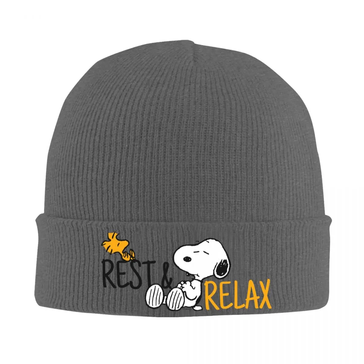 Snoopy Woodstock Lazy Days Knitted Caps for Women Men Beanies Winter Hats Acrylic Classic Comic Peanuts Warm Melon Cap