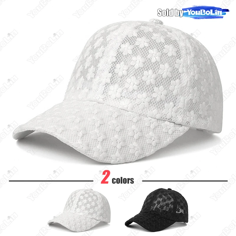 Summer Fashion Women's Lightweight Office Lady Lace Baseball Cap with Embroidered Flowers and Mesh Ventilation Sun Hat