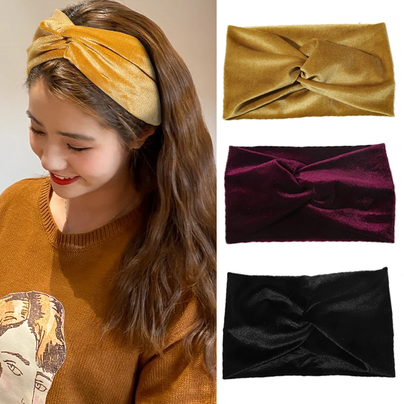 Cross Women Hair Accessories Gold Velvet Headbands Solid Color Girls Stretch Headwear Casual Hair Band Headpiece