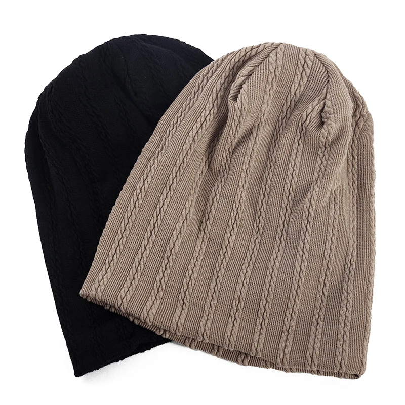 New Unisex Two-Tone Winter Hats Add Fur Lined Men And Women Fashion Warm Beanie Cap Casual Winter Knitted Hats