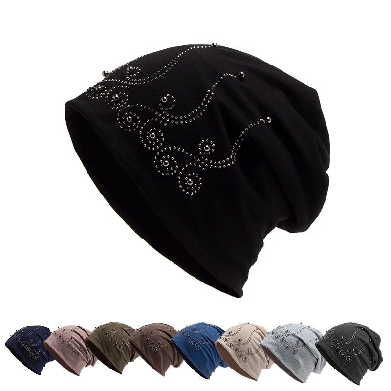 Women Beanie Rhinestones Pearl Autumn Hat For Women Fashion Balaclava Casual Hats Female Knitted Warm Skullies Bonnet Winter