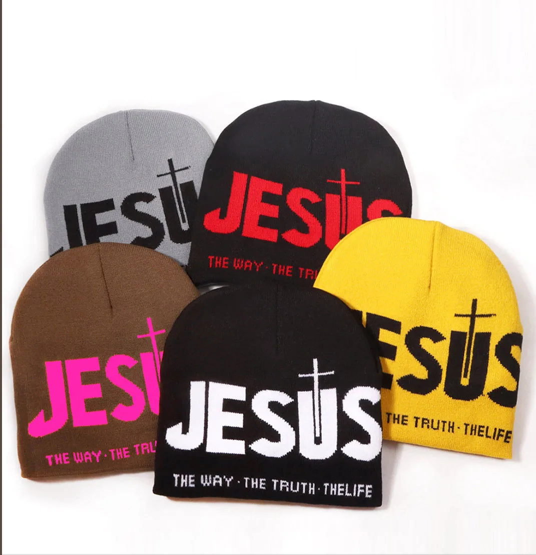 JESUS Letter Winter Beanie - Unisex Knit Hat for Men & Women, Outdoor Sports & Casual Stretchable Warm Skull Cap