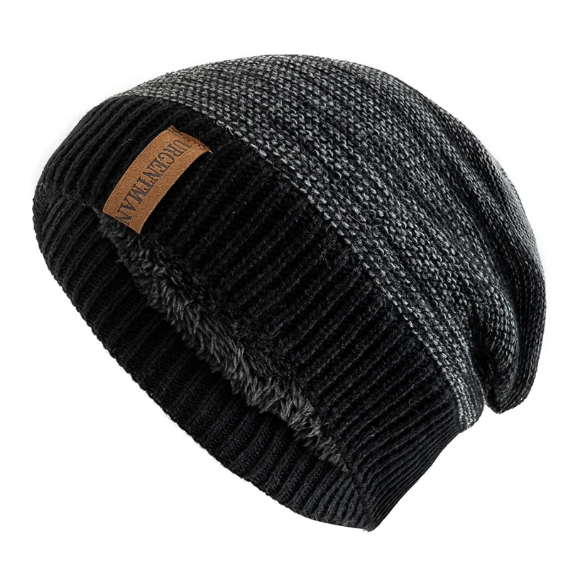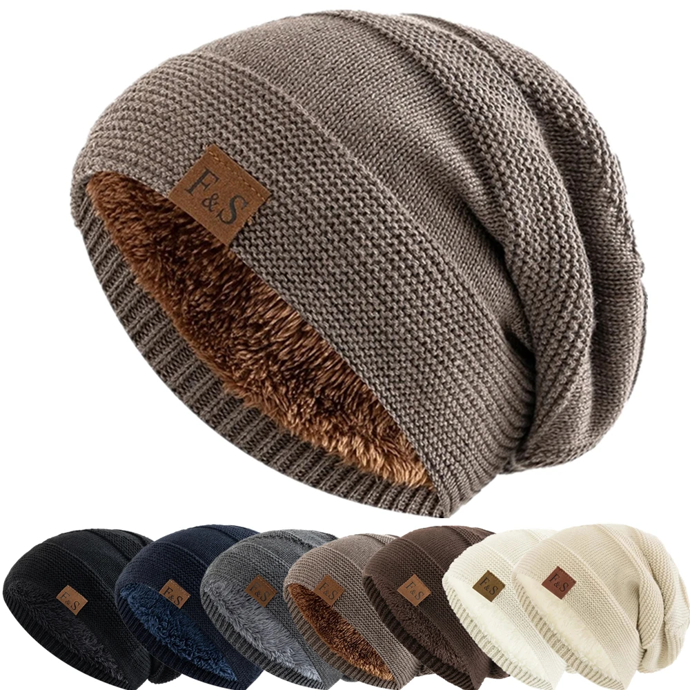 Hot Sale Unisex Classic Slouchy Winter Hats Plush Fur Lined Warm Beanie Cap Men Women Casual FS Label Decor Winter Knitted Hats