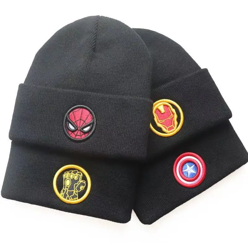 MARVEL Spider Man Captain Iron Man Cotton Embroidered Beanies Casual Hats Knitted Winter Hat Hip Hop Hoodie Bonnet For Women Men