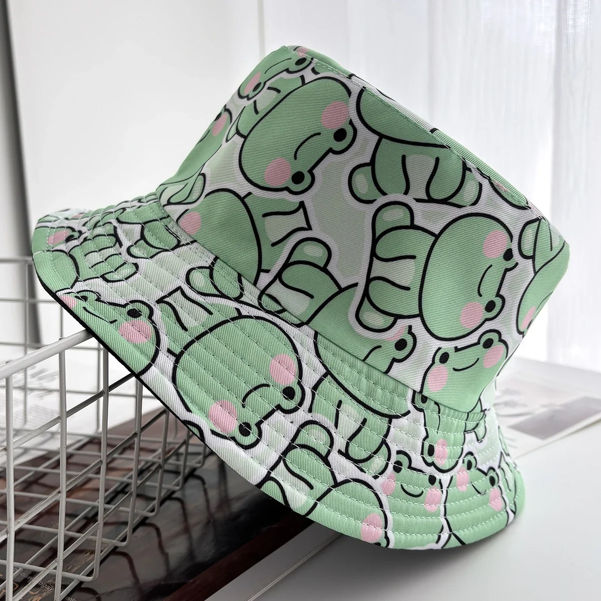 Vintage Printed Fishing Hat Summer Fisherman Hat Reversible Cartoon Bucket Hats For Women Men Street Hip Hop Bucket Cap