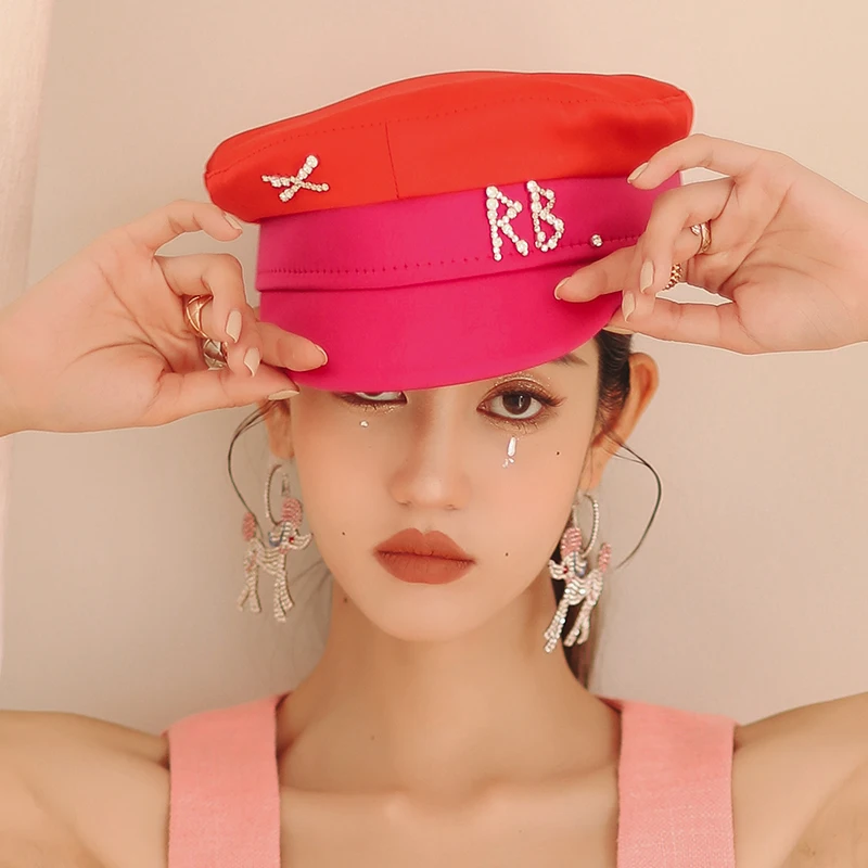 Brand Designer Satin Diamond R B Letter Newsboy Caps Women Flat Militray Hat Adjustable Women Beret Hats Gorras Mujer