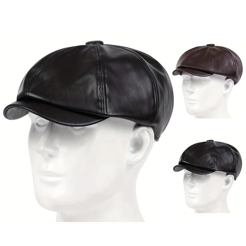 Spring Autumn Hats for Women Solid Plain Octagonal Newsboy Cap Men Ladies Casual Pu Leather Hat Winter Beret Women Painter Caps