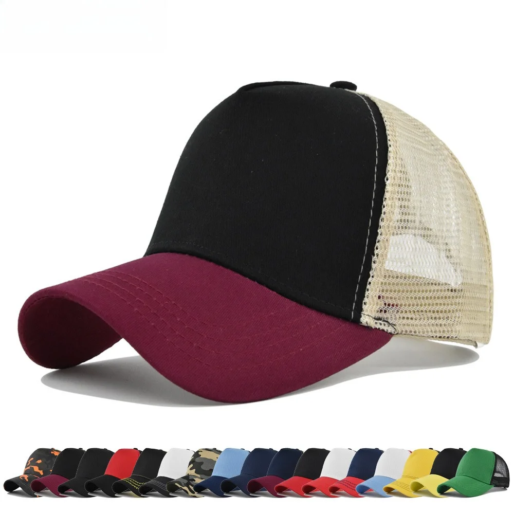Custom Trucker Hat Logo Cotton Mesh Breathable Baseball Cap Women Men Summer Sunshade Mesh Cap 5 Panels Truck Hat Cap Wholesale
