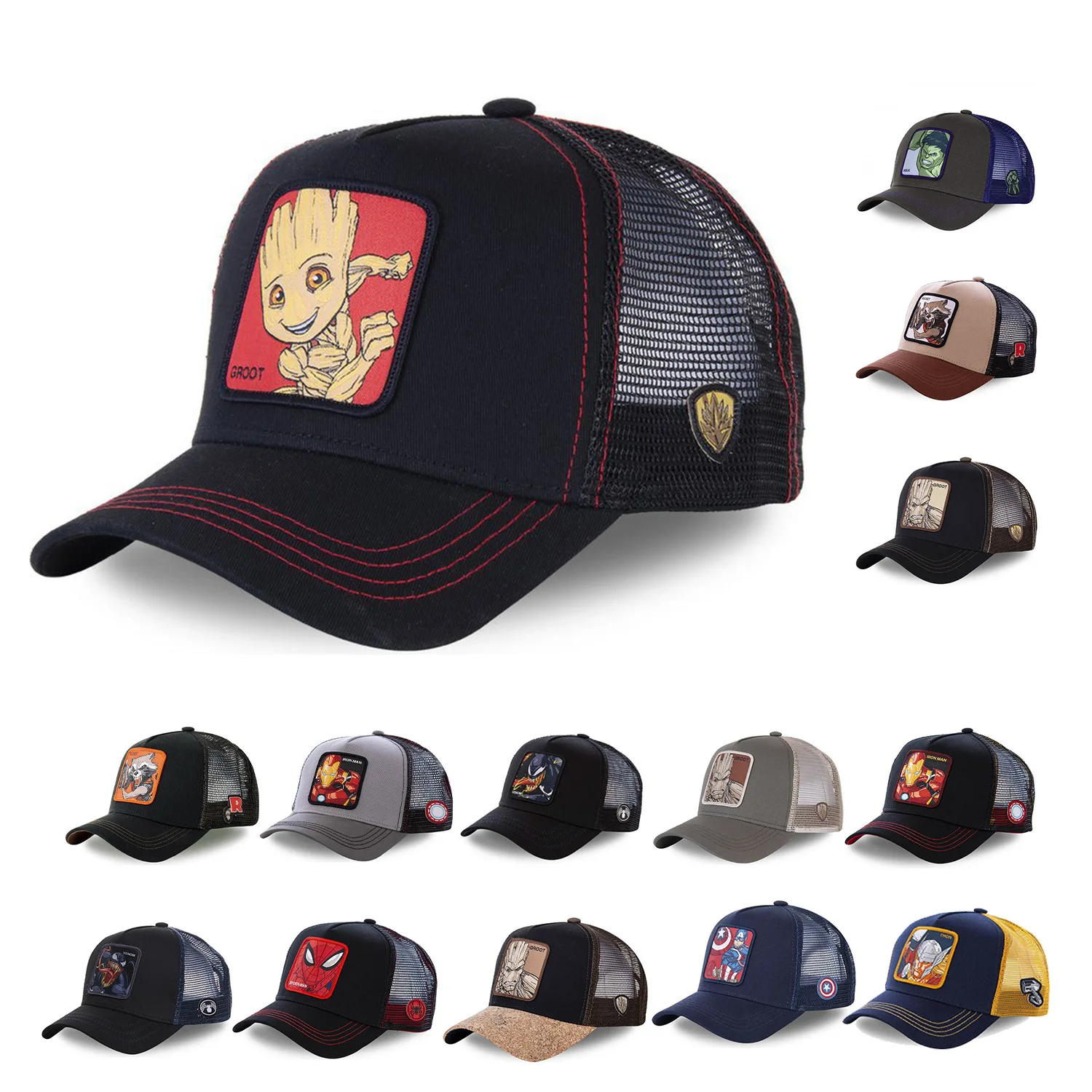 High Quality Marvel All Styles Anime Cartoon Snapback Cotton Baseball Cap Men Women Hip Hop Dad Mesh Trucker Hat Dropshipping