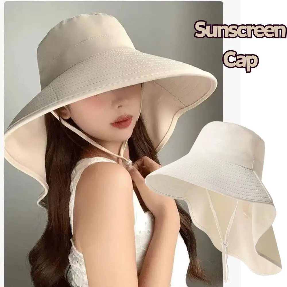 Ice Silk Female Sunshade Hat Neck Guard Face Cover Women Sun Hat Wide Brim Dustproof Summer UV Protection Cap Mountaineering