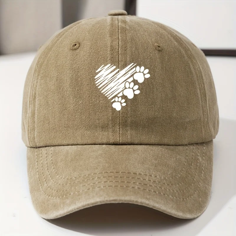 Heart shaped and paw print design baseball caps for men and women are lightweight and durable, suitable for casual outings