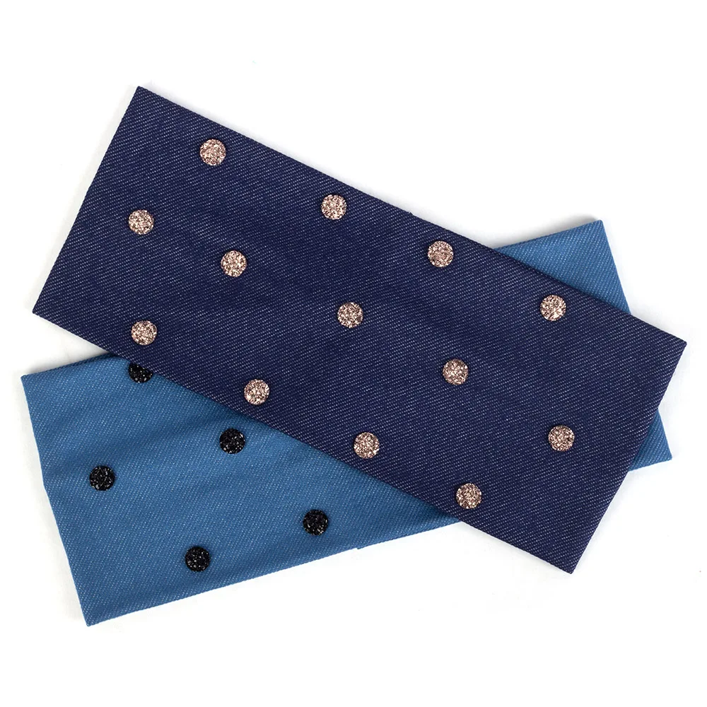 Women Fashion Casual Denim Hairband Shine stones Hairbend Female Girls Stretchy Plain Flat Turban Hair Accessories