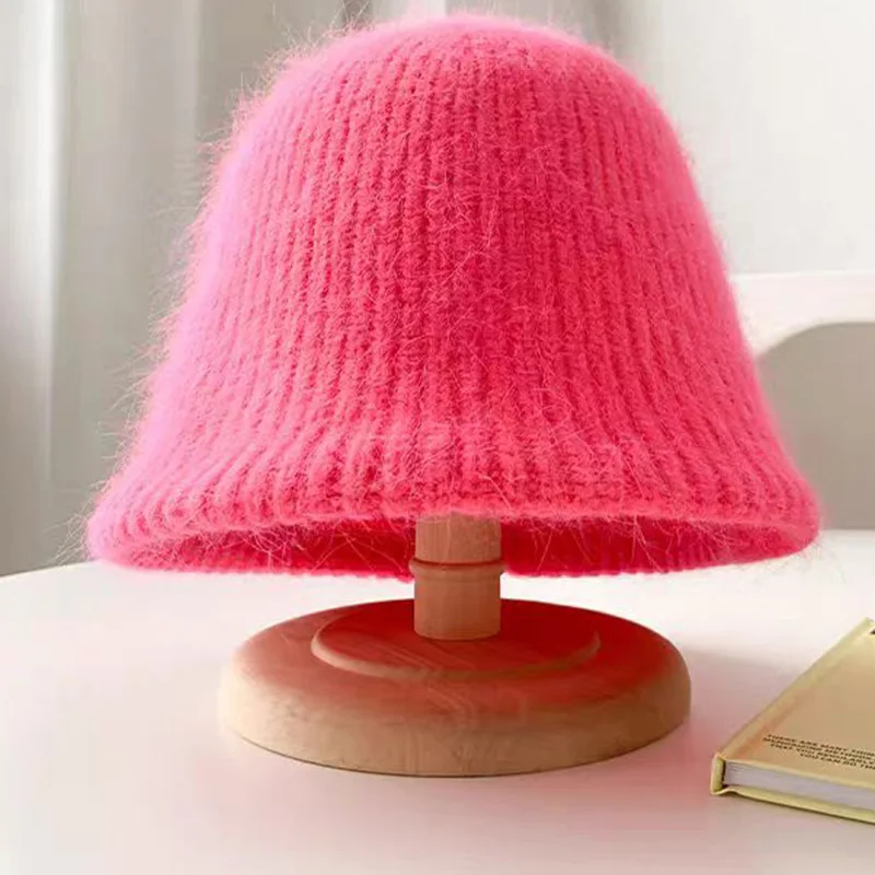 MAXSITI U Comfortable soft rabbit fur blended knitted bucket hat women winter warm fisherman hat dopamine colored basin hat