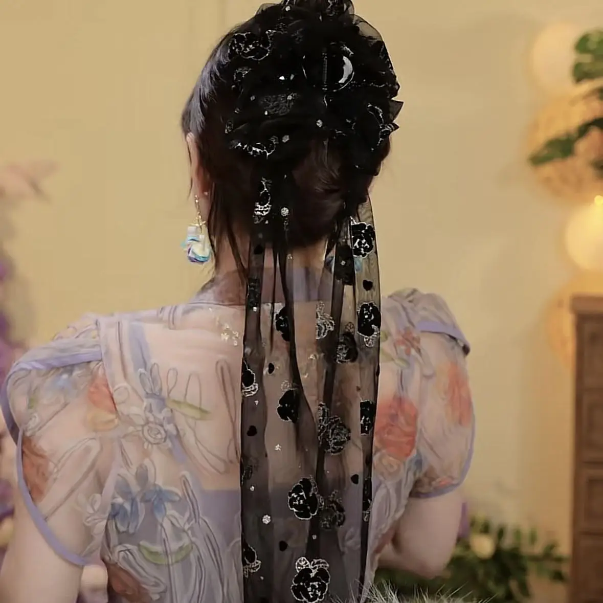 Female New Chinese Style Casual Fashion Headwear Accessories Embroidery Ribbon Mesh Hair Clip Women's Shark Clip Hair Claws