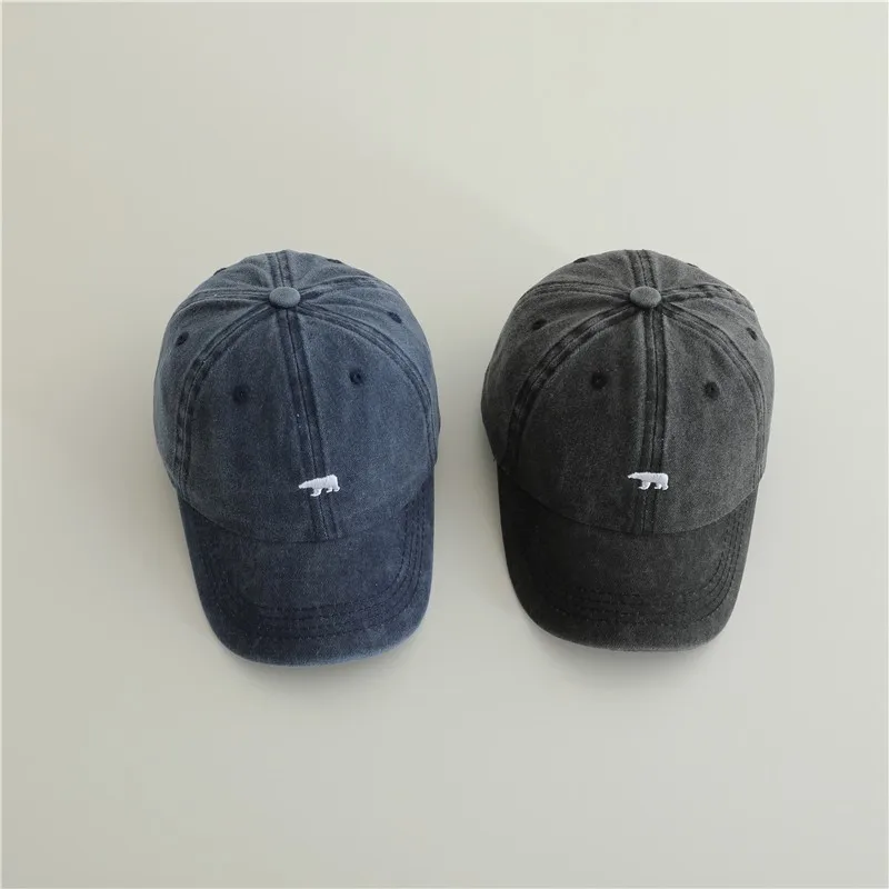 New Baby Embroidery Bear Denim Baseball Hats Outdoor Boy Girl Sunscreen Hat Retro Kids Peaked Cap Cotton Children Casual Caps