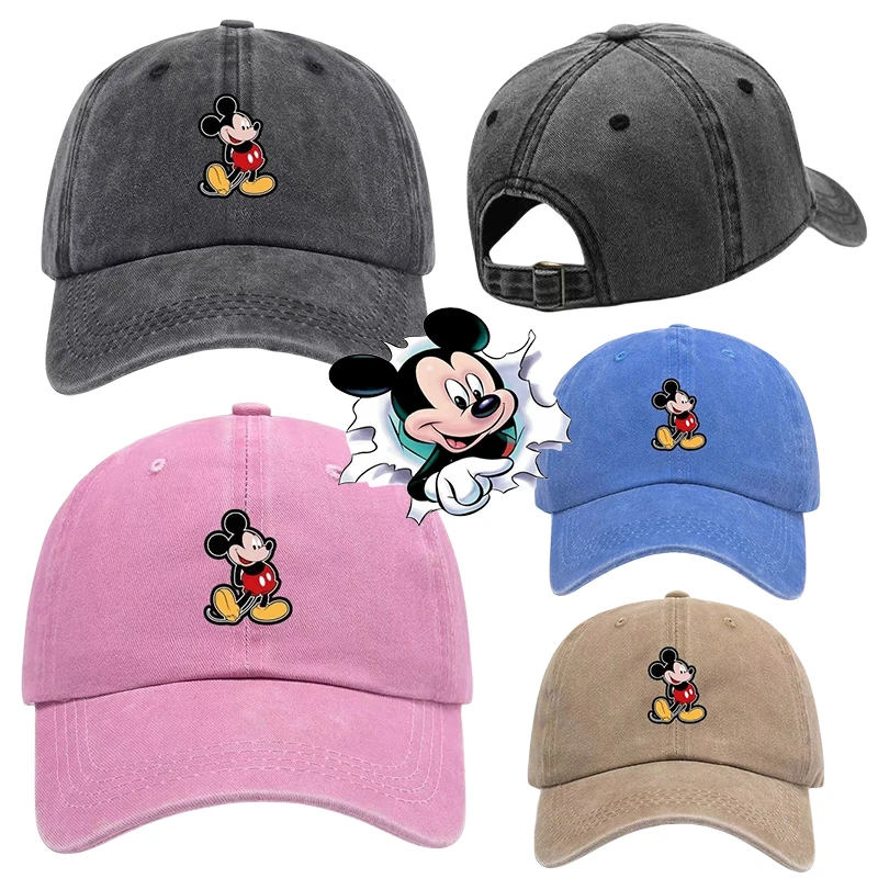 Disney Mickey Mouse Baseball Cap Cartoon Hip Hop Cap Men's and Women's Retro Letter Embroidery Baseball Caps Casual Hats 54-59cm