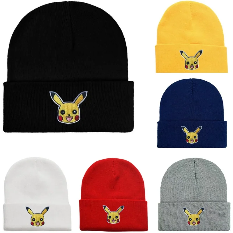 Pokemon Unisex Cotton Cartoon Embroidered Beanies Casual Hats Knitted Winter Hat Hard Hip Hop Skull Bonnet Hat For Women Men