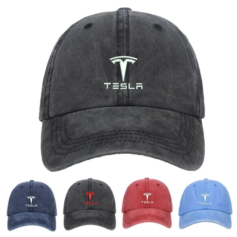 Cotton Washed Baseball Cap for Tesla Casual Men Women Four Season Outdoor Sport Hiking Embroidery Sunshade Hat Adjustable Gift