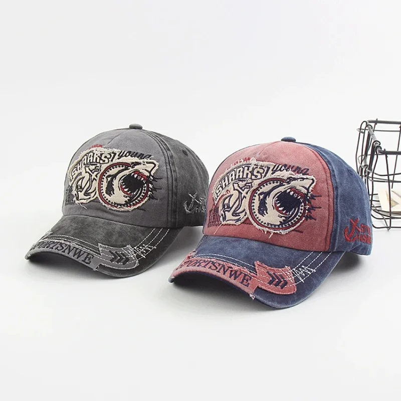 Fashion Men Baseball Cap Large Letters Pure Cotton Shark Embroidery Casual Visor Hat for Women Snapback Hip Hop Caps Peaked Cap