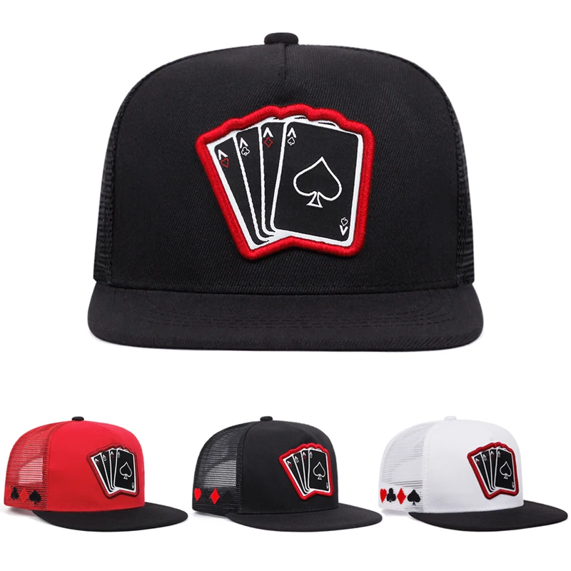 Poker Card A Four Embroidered Fashionable Men's Flat brimmed Hat Baseball Hat Hip Hop Hat Women's Casual Decorative Sunshade Hat