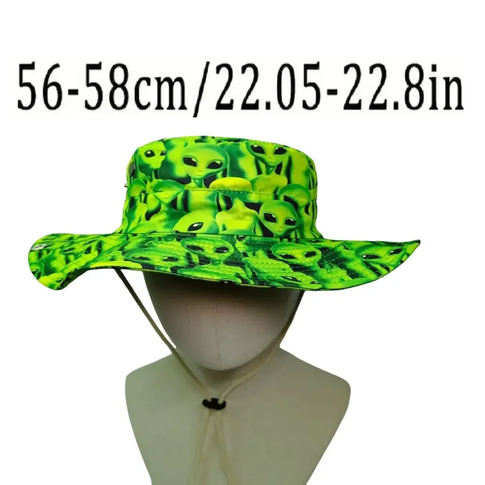 Novelty Alien Pattern Printed Sunshade Hat - Lightweight Foldable Men's and Women's Fishing Hat with Adjustable Drawstring Closu