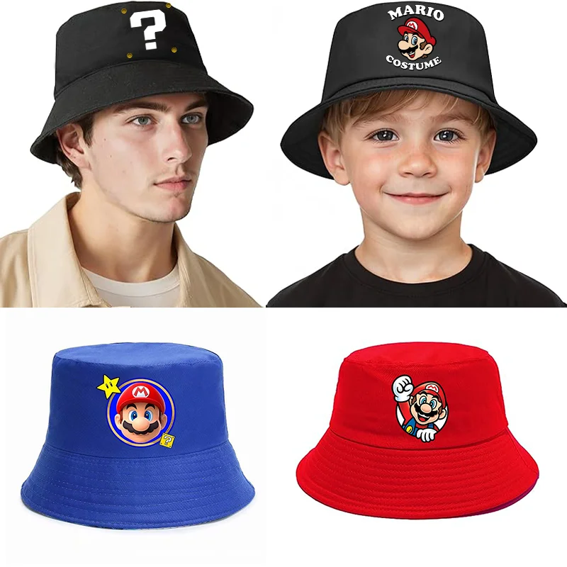 Super Mario Bros Adult Child Bucket Hat Summer Fashion Women Men Sun Hats Cartoon Character Print Boys Girls Travel Caps Gifts