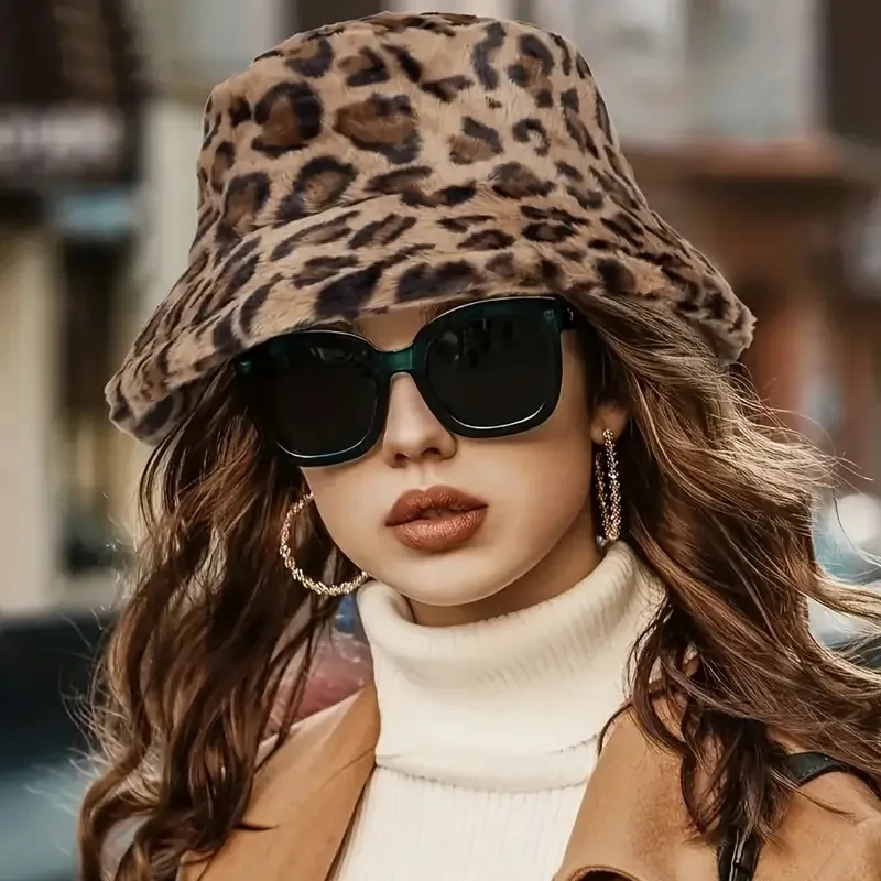 Winter Bucket Hat Women's Fashion Leopard Panama Warm Hats Female Vintage Faux Fur Fisherman Cap Hats For Women Dropshipping