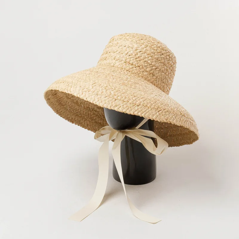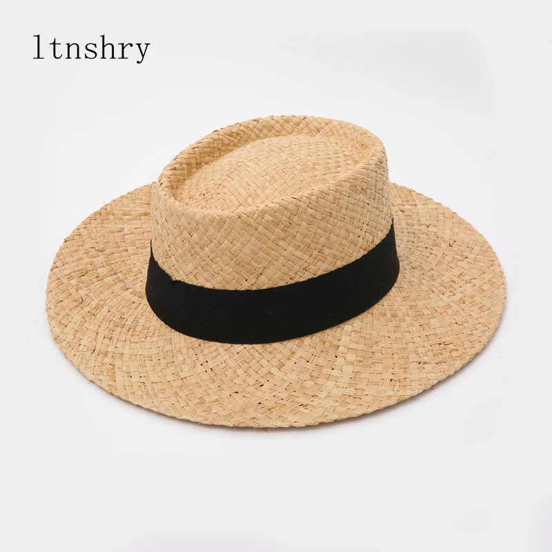 New Band Handmade Women Straw Sun Hats Large Wide Brim Gilrs High Quality Natural Raffia Panama Beach Straw Sun Caps For Holiday