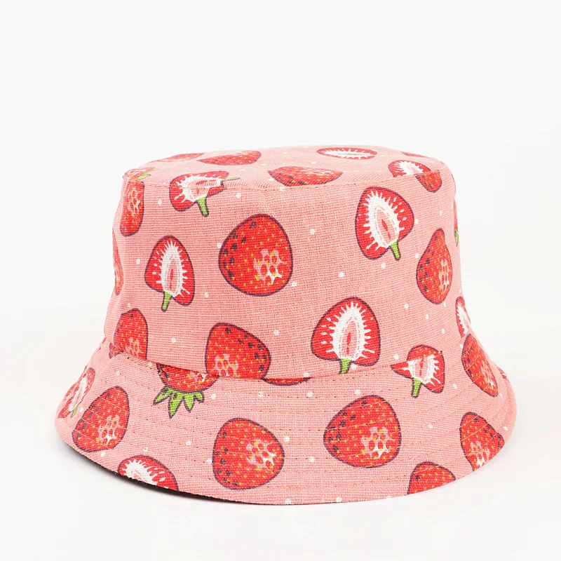LDSLYJR Cotton Strawberry Print Bucket Hat Fisherman Hat Outdoor Travel Hat Sun Cap Hats for Girl and Women 272