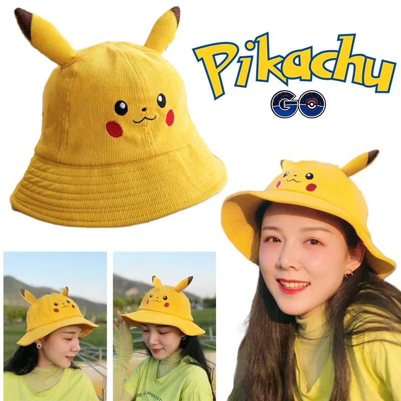 Pikachu Bucket Hat Anime Funny Men Women Cute Casual Couple Beach Panama Sun Visors Cap Cartoon Kawaii Travel Sunbonnet Hats