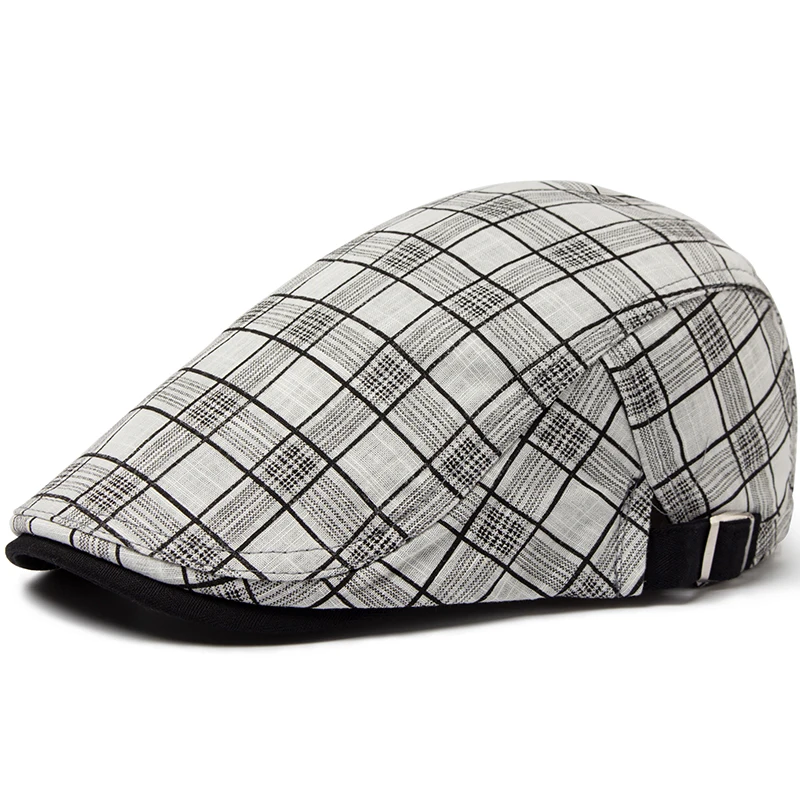 CNTANG New Summer Thin Beret Fashion Men Vintage Plaid Cotton Linen Visor Flat Caps For Women Berets Boina Casual Female