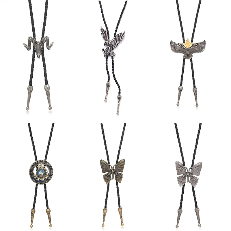 Vintage Cowboy Jazz Hat Alloy mens bolo tie Men Women Leather Rope Long Necklace Sweater Chain shirts Bolo Tie Men Accessories