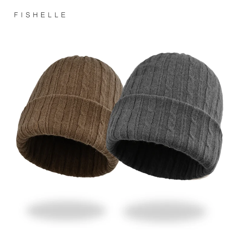 Fine twisted double layer pure wool hat Women's warm knitting 100 wool cap autumn winter girl boy Beanie luxury gift