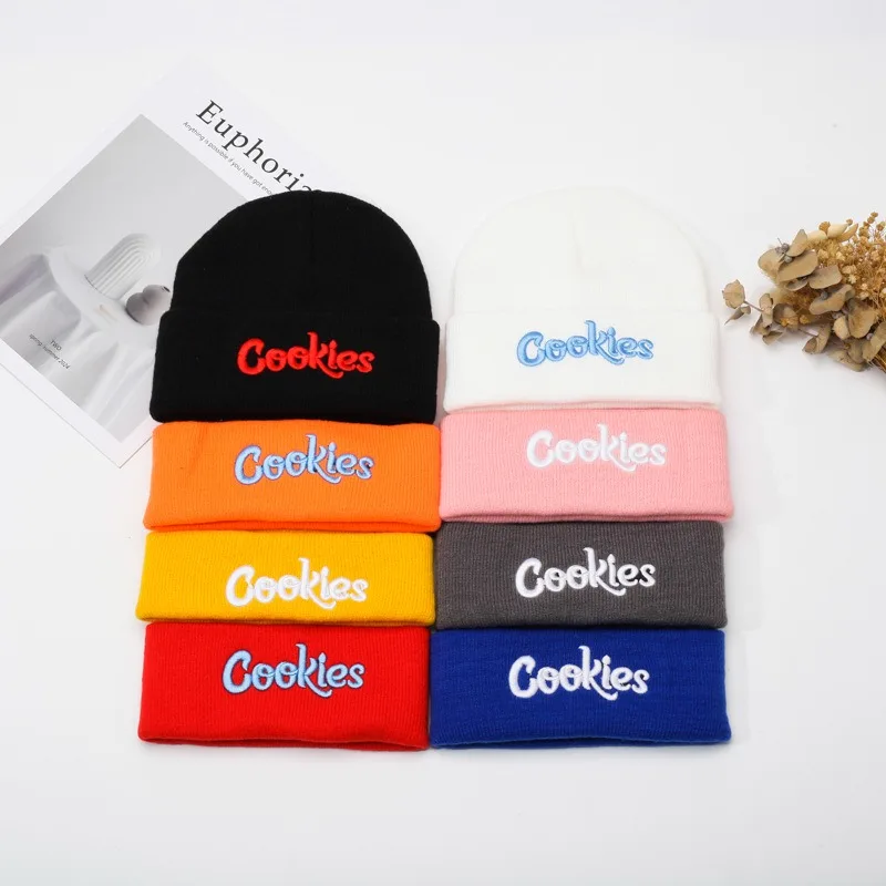 New style letter Cookies embroidered knit cap wool hat warm beanie for men and women autumn winter hat