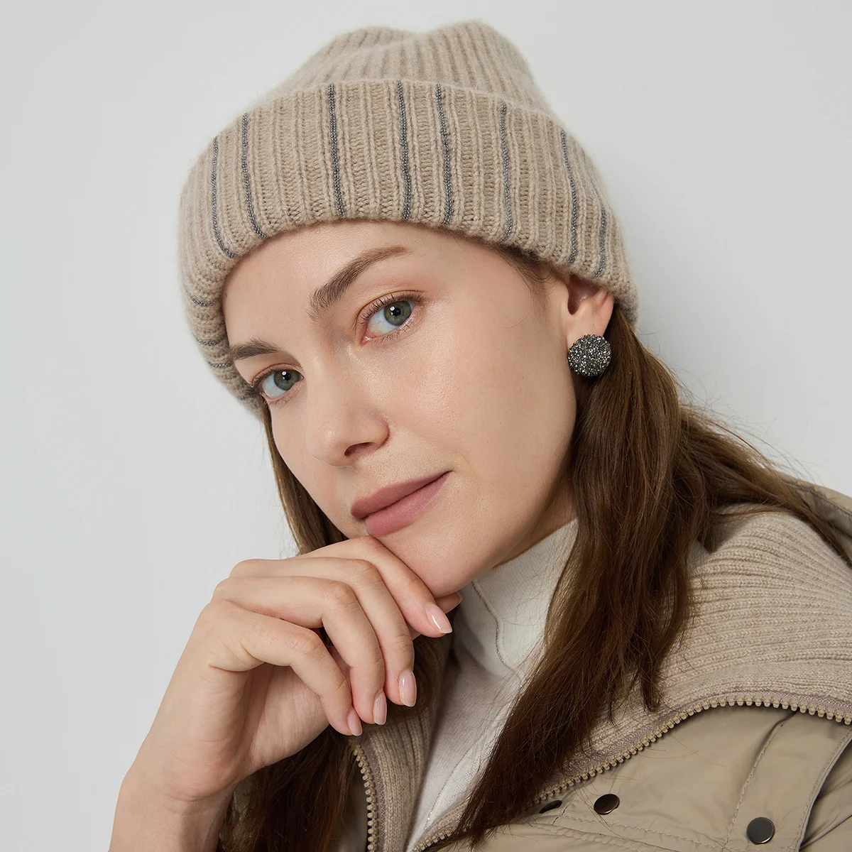 BY3521403 Luxury Women's 100% Cashmere Beanie Soft Rib Knit Winter Hat Elegant Warmth