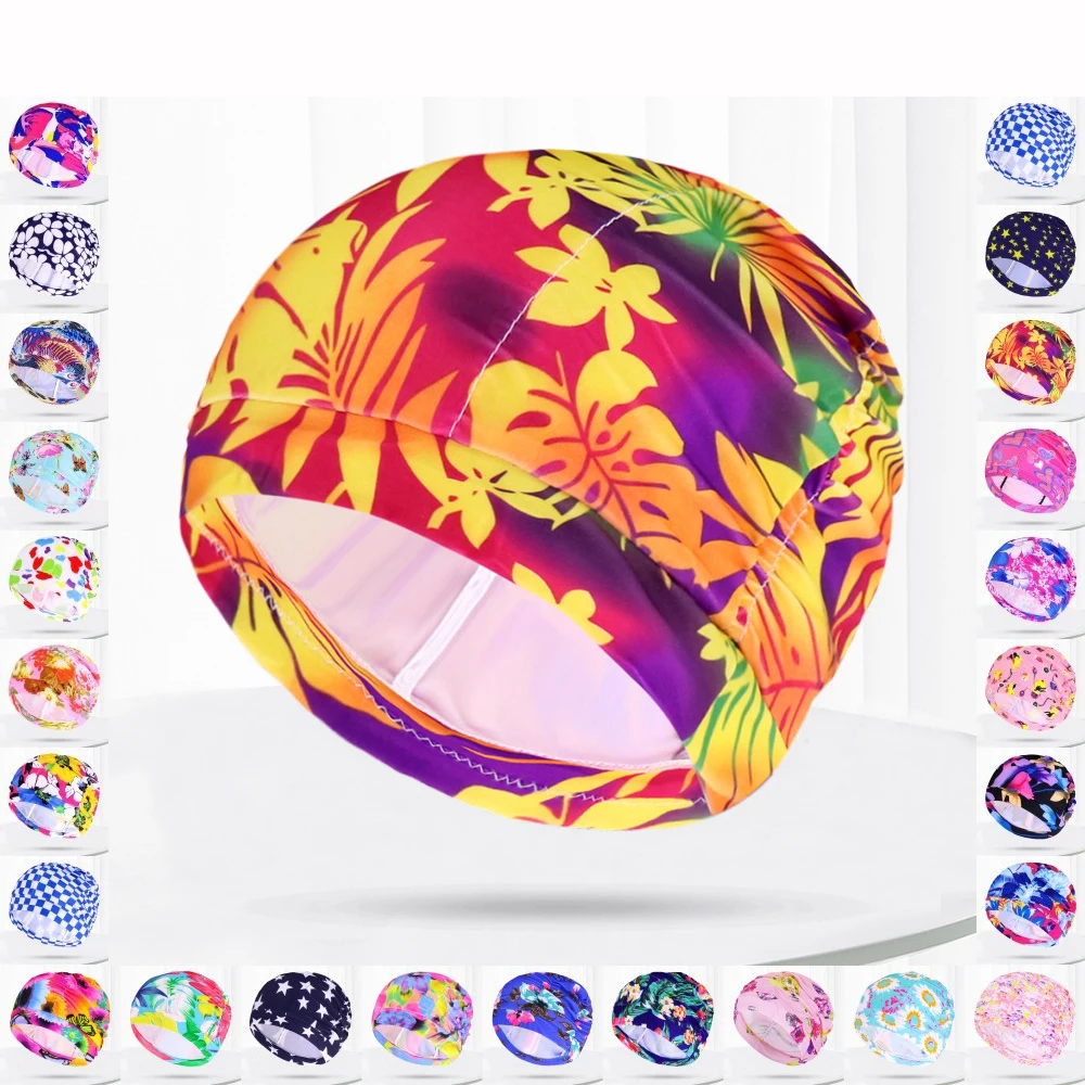 Men Women Fabric Swimming Caps Multi Colors Patterns Printed Swim Pool Water Sports Bathing Hat Elastic Nylon Turban for Adults