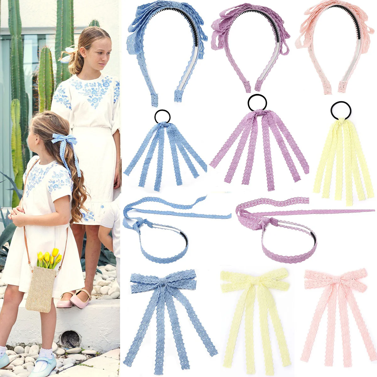 Cotton Lace Floral Knitted Ribbon headband Colorful Elegant Hairbow Hair Accessories Elegant Hair Scruchy hairband bow clip  Read more
