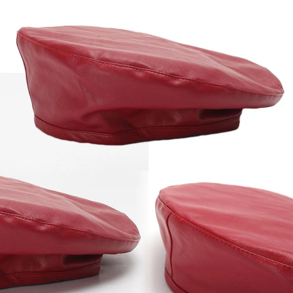 Women Female Ladies Warm Beanie Beret Cap Adjustable Hat French Artist Hat PU Leather Berets