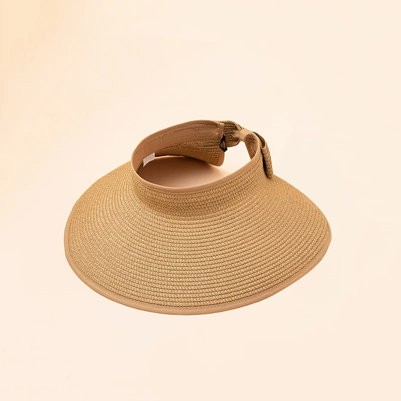 Summer empty straw hat foldable outdoor portable bow wide brimmed visor for women sun protection beach hat