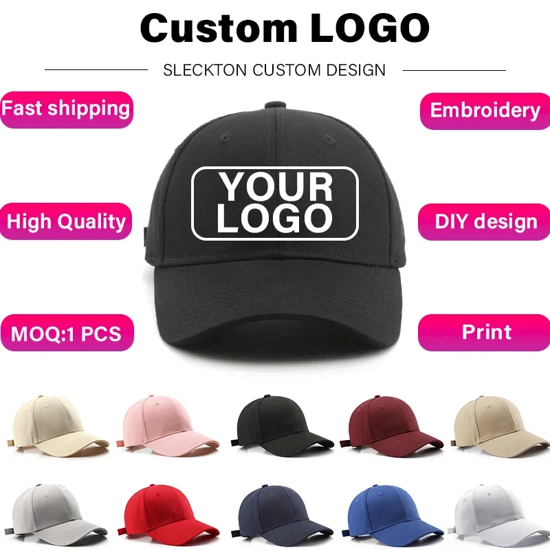SLECKTON Custom LOGO Baseball Cap for Women and Men Fashion DIY Letter Embroidery Hats Cotton Design Caps Wholesale Unisex