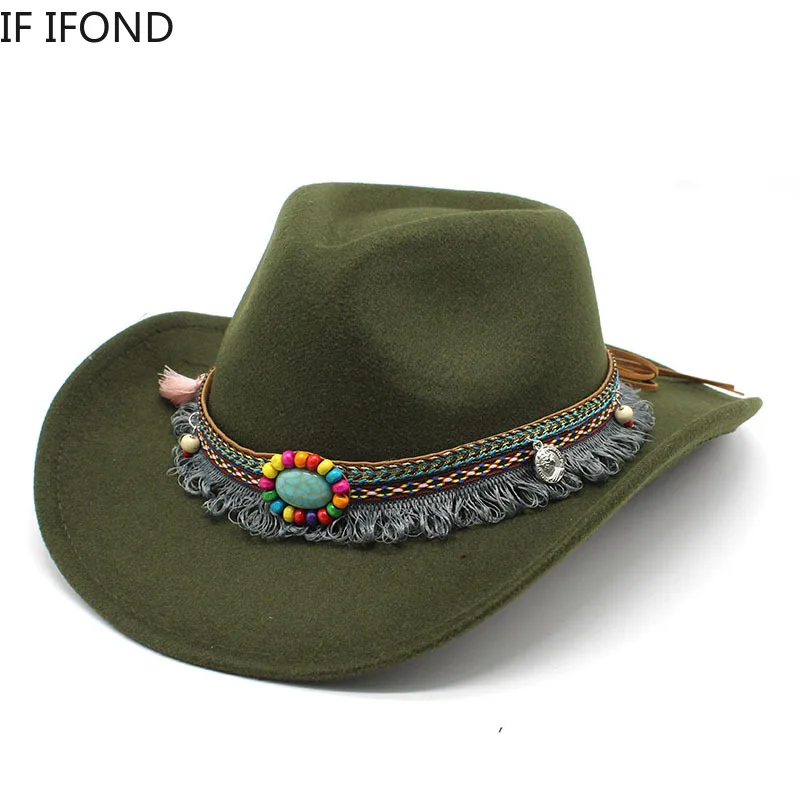 Winter Autumn Men's Western Women Cowboy Hat For Gentleman Lady Cowgirl Jazz Hat Wide Brim Felt Fedora Hat Sombrero Hombre  Read more