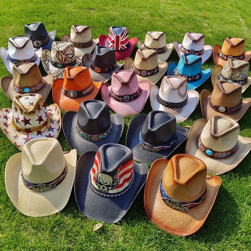 New Lake Blue Western Cowboy Straw Hat 2024 Spring and Summer New Outdoor Sun Hat Men's and Women's Cowboy Hat gorras  Read more