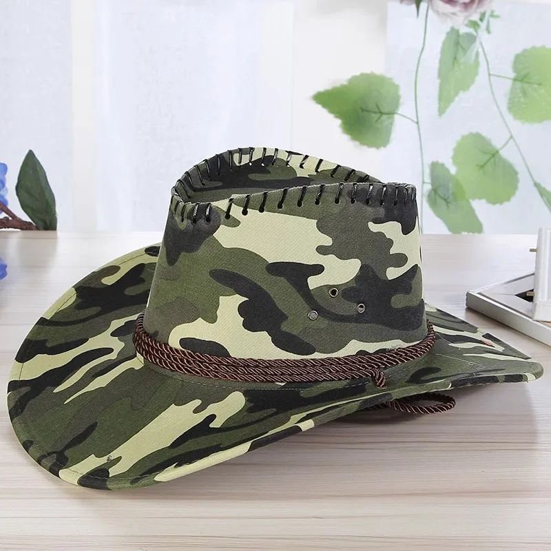 American Western Cowboy Hat with Wide Brim, Camouflage Hat for Men and Women, Summer Outdoor Travel Fishing Sunshade Sun Protect
