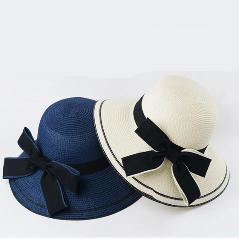 Straw Hat Spring Summer Bow Hat Sunscreen Shade Beach Foldable Sun Hat Women's Summer Hats