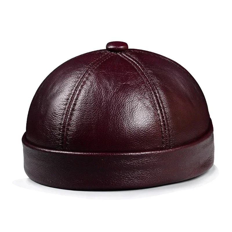Spring/Winter Women Genuine Leather Retro Watermelon Thin Beanie Hats Male Casual Caps Female Black/Red Boonie Hat Bonnet Mujer